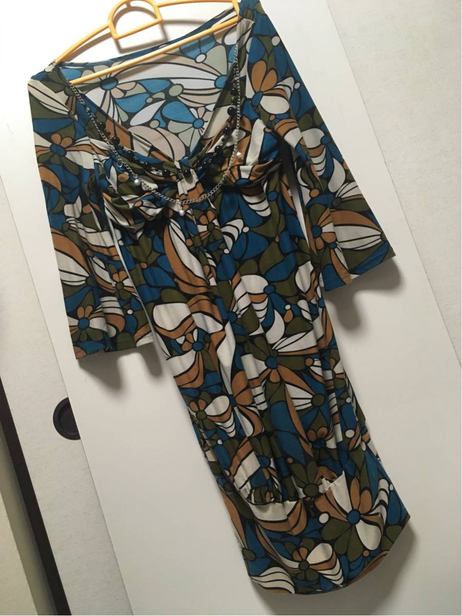 - 新品 ペンダント付 花柄 バブル系ワンピース