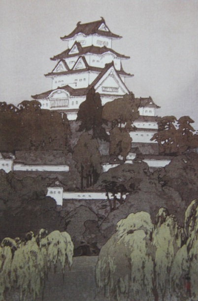 - 吉田博、【姫路城】、希少画集画、高級新品額・額装付、状態美麗、送料無料