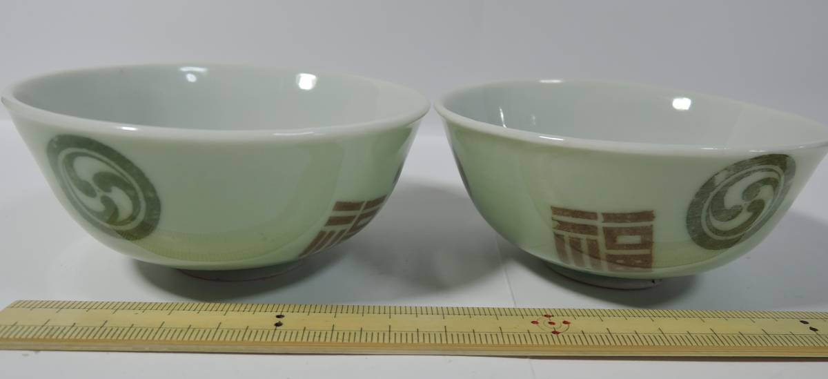 - K04■昭和レトロ 福 薄緑の湯飲み/玉湯呑み 2個■