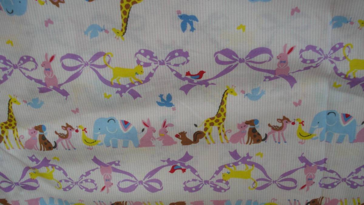 - 「サーカス・アニマル・ボーダー・ストライプ」(ピンク系)約50×50cm/バンビ・うさぎ・犬・ねこ・ゾウ・キリン・アヒル