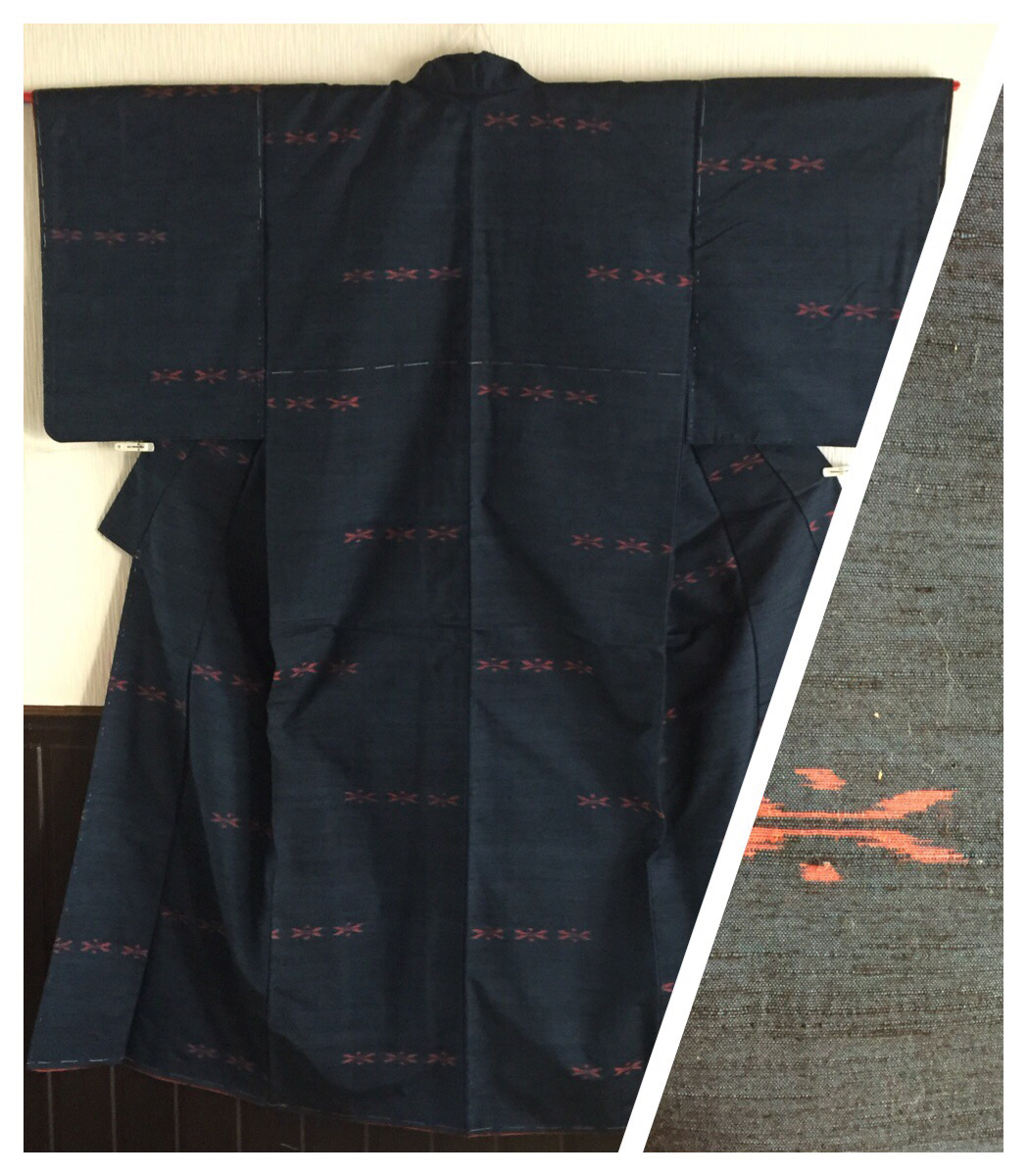 - 【紬の着物】正絹/袷/身丈146cm/躾有り/鉄紺色