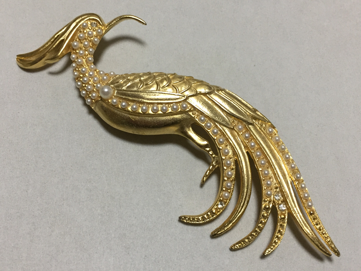 - フェイクパール ジルコニア 大きな鳳凰のブローチ