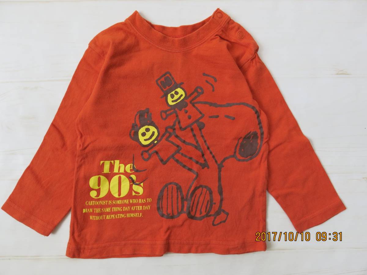 > スヌーピーのロンT【95】長袖キャラクターT男女兼用オレンジ