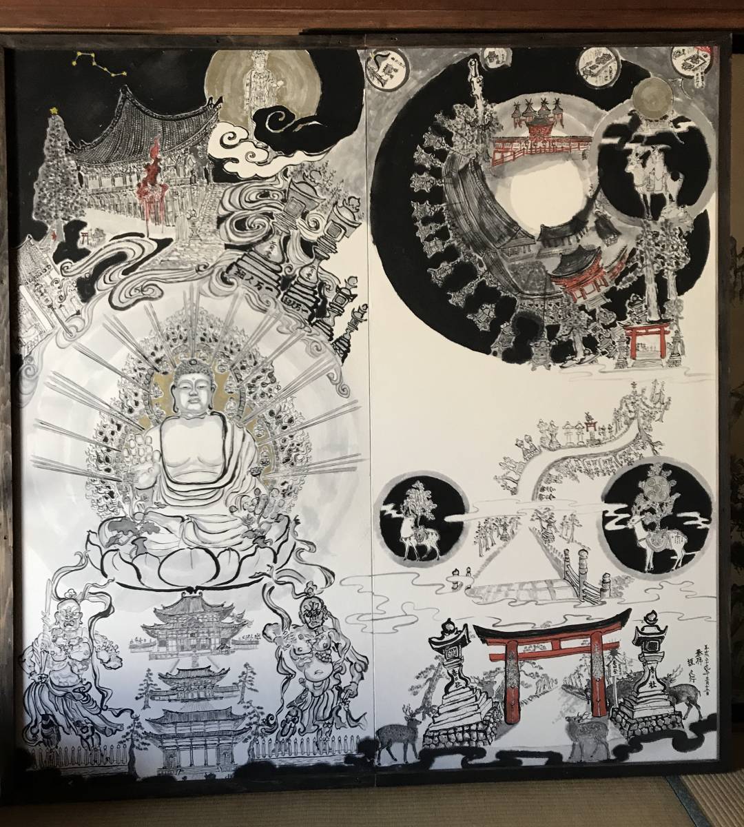 - 巨大水墨画1点物 日本表現派賞も受賞した作者 作品 展覧会 個展などにも出品 ホテル 旅館などにも