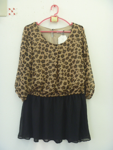 - ●◇【イーハイフン ワールド ギャラリー】レオパード×黒 切替えワンピース フリーサイズ 8分袖? ※未使用タグ付き