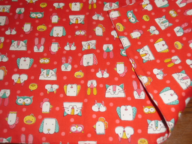 > No.10 大判裏付ランチョンマット ハンドメイド 40x60 アニマルフェイス 赤
