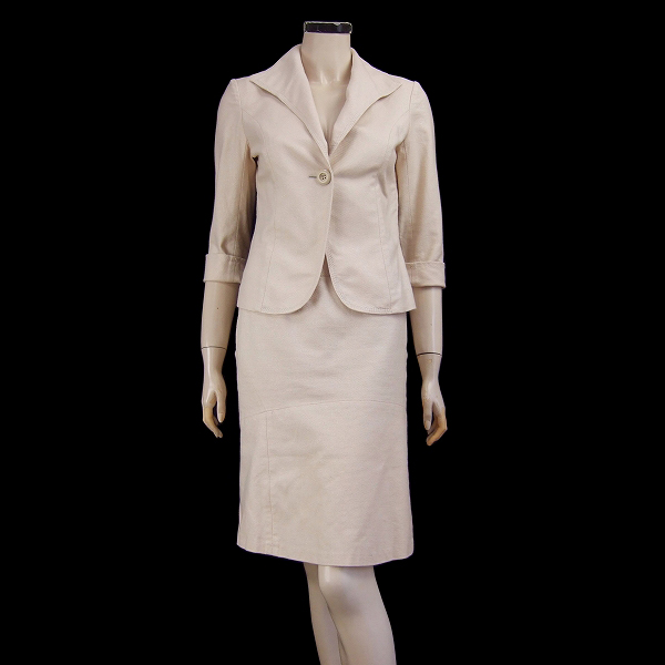 > 美品★KUMIKYOKU*組曲*輝きラメ入りコットン混*ベージュ系*美形スカートスーツ*セットアップ*2(9号.Mサイズ.38)