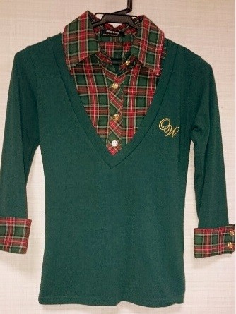 - ★ONE WAY★タータンチェックシャツの重ね着風カットソー★M★