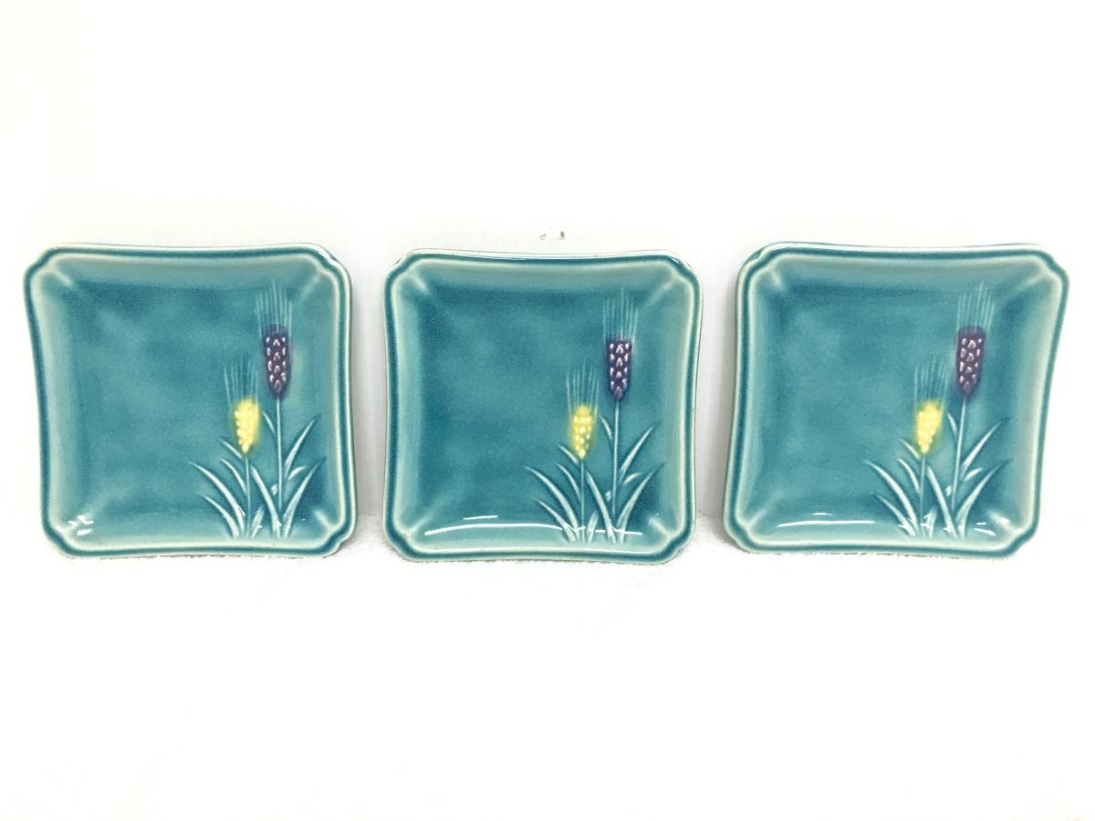 > 未使用品● 瀬戸焼 貫入陶器 フルーツ皿 手描き 工芸品 小皿 銘々皿 和食器 3客セット フルーツフォーク付 管理1803 I-13