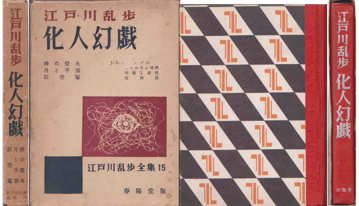 - 江戸川乱歩全集15「化人幻戯/神の燈火(訳/エラリー・クイーン原作)/月と手袋/防空壕 他」昭和30年刊