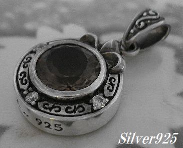 - シルバー925銀の天然石スモーキクォーツ[多面カット]&ジルコニア付サークル ペンダント/S&A silver