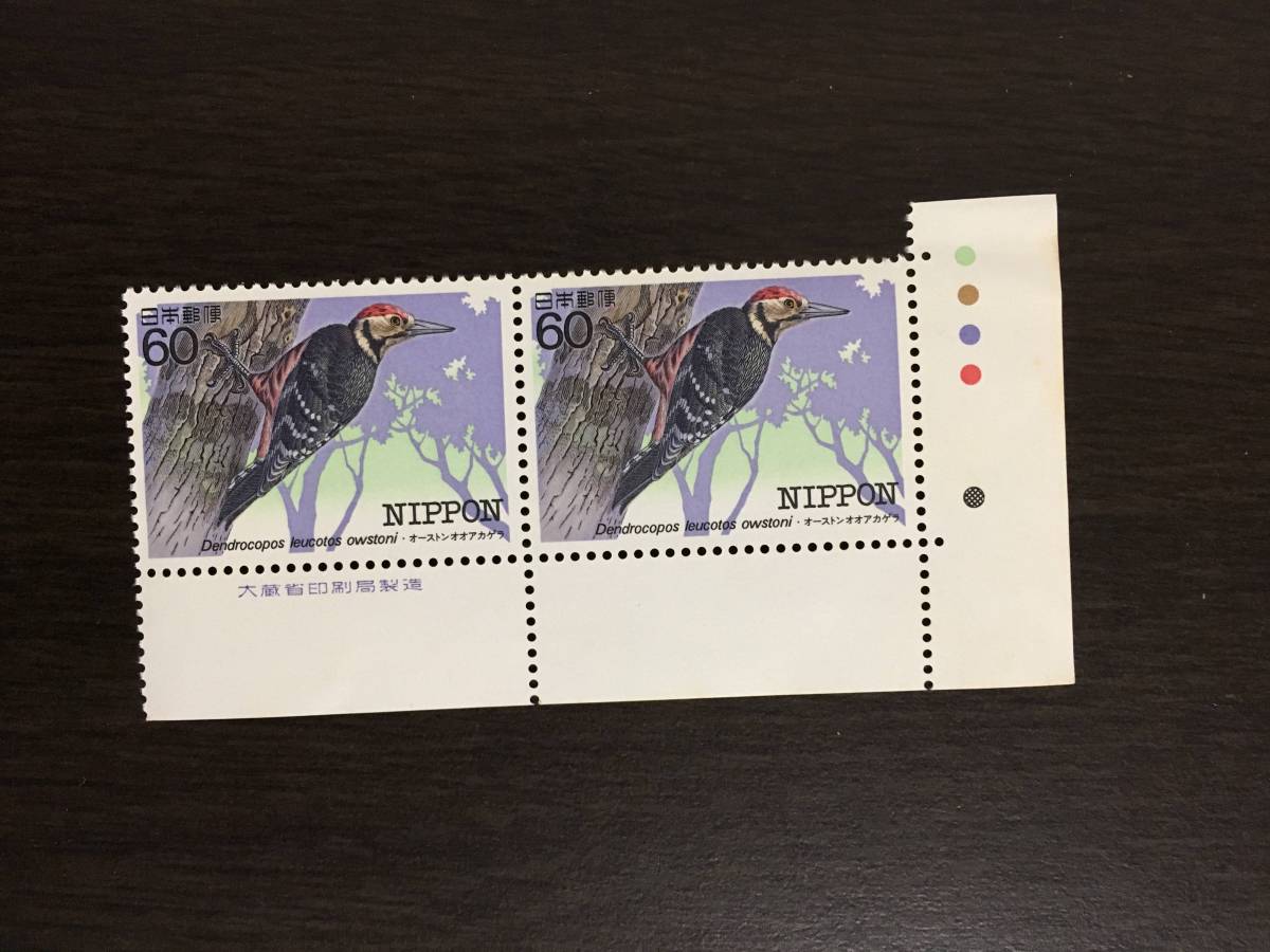 - ★未使用 特殊鳥類 オーストン オオアカゲラ 銘版付 カラーマーク 1984年昭和59年 大蔵省印刷局製造60円 記念切手2枚 ミニレター