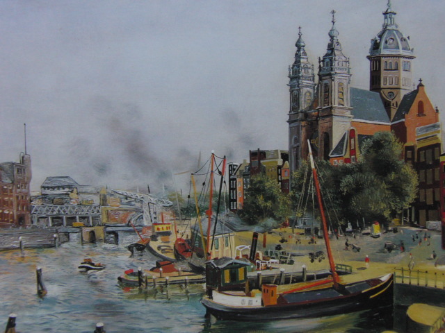 - モイズ・キスリング、【アムステルダムの運河】、希少な画集画、新品高級額 額装付、状態良好、送料無料、絵画 風景画