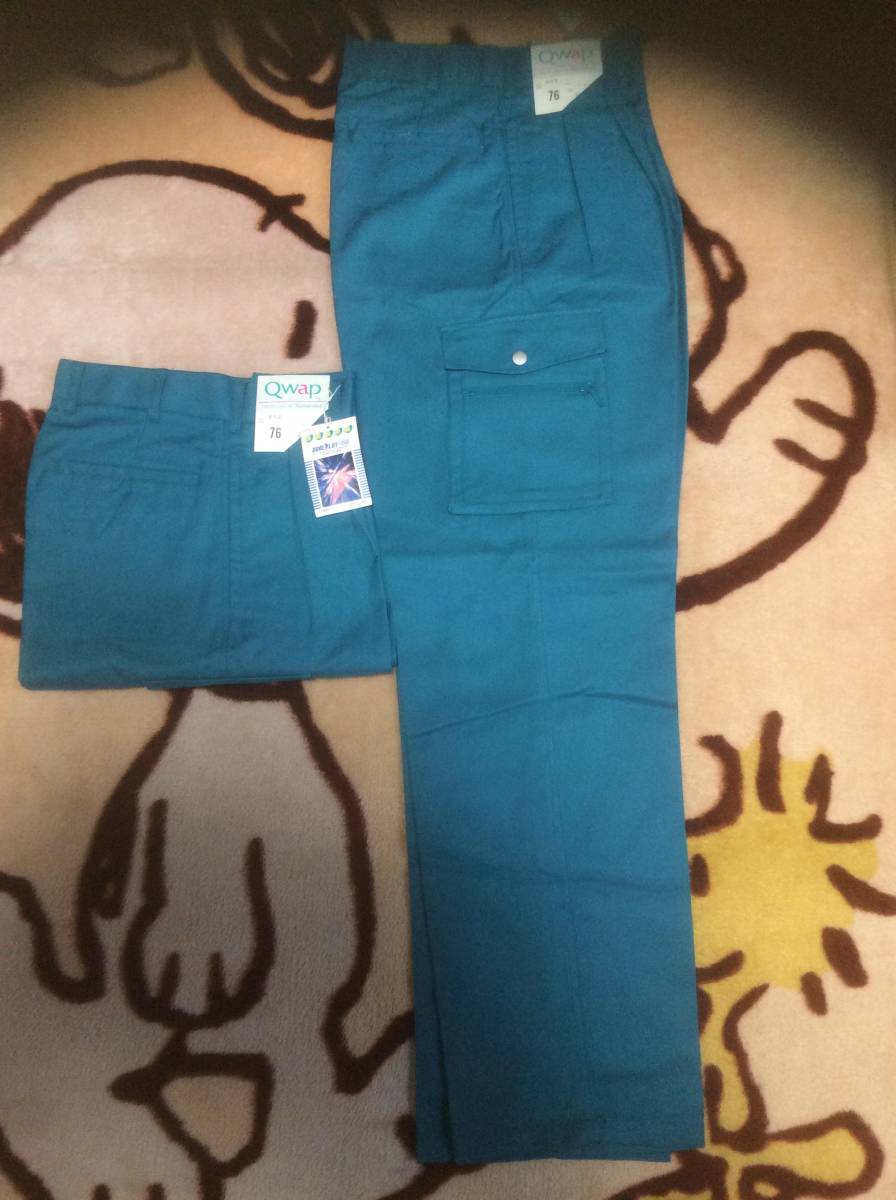 > 76 ヤマタカ 作業 ズボン カーゴパンツ ターコイズブルー ポケット 多数 2本 セット 激安 作業着 即決 早い者勝ち 送料無料