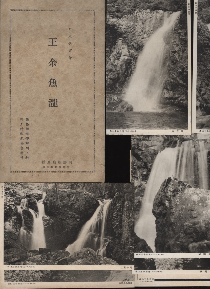 - 王余魚瀧 徳島県海部郡川上村 滝の絵葉書 モノクロ10枚 紙ケース 栞付き :王餘魚滝かれいだき 轟九十九滝 海陽町 龍王寺・轟神社・鍋割滝