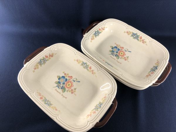 > 未使用品・激レア!★ ROYAL MARUISIHI WARE (ロイヤル丸石ウェアー) スクエアープレート 5客 セット フォーク 付き 箱あり管理1804 J-4