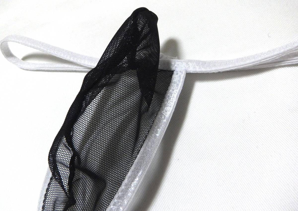 - 【新品】メンズ上向きとんがりスケスケ総メッシュ生地ホワイトGストリング