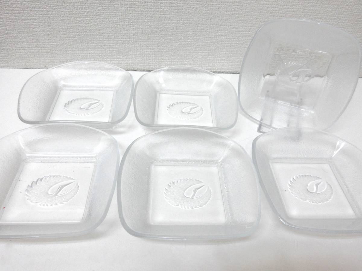- 美品・レトロ■ガラス皿 鳥柄 四角 6枚セット 管理1805 L-1