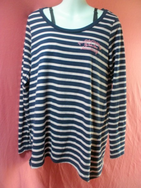 - USED ボーダー柄 チュニック サイズL 紺/ピンク系