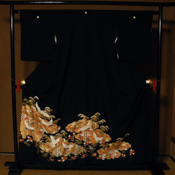 - 正絹 若干難有り 八重桔梗 黒留袖 着付け・踊り等の練習着に-袷-