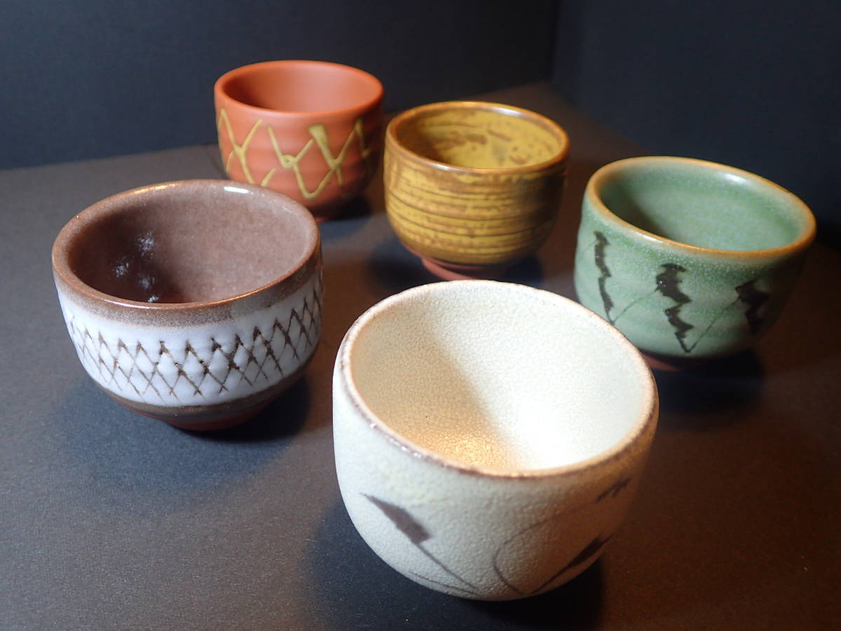 - 【未使用】有田焼 一位窯 ぐい呑 5客 酒器 猪口