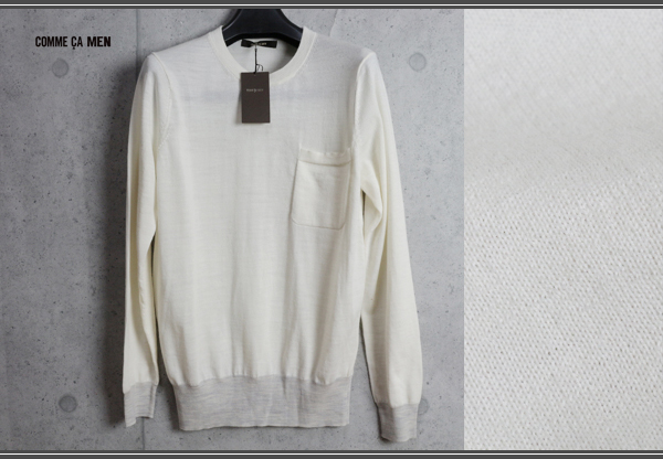 - 新品コムサメン秋冬 上質ウール ニット ハイゲージ セーターLライトクリーム 定価1.4万円/COMME CA MEN
