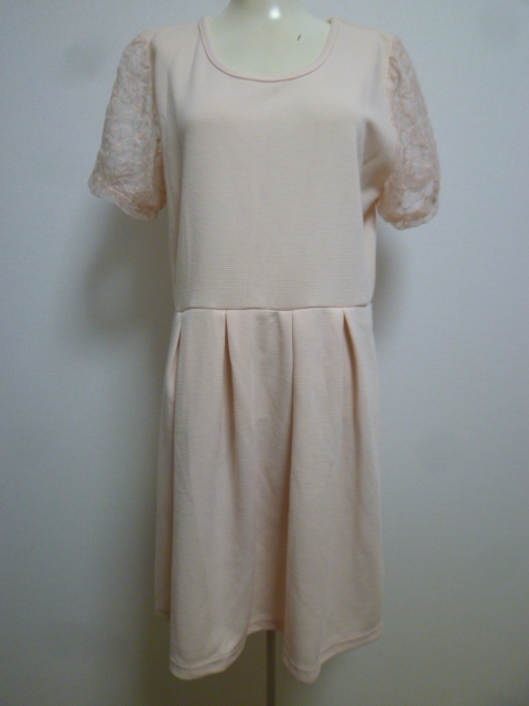 - 【新品】with ease♪淡ピンク花柄透けレースパフスリーブワンピースLL/大きいサイズ膝丈半袖♪H77