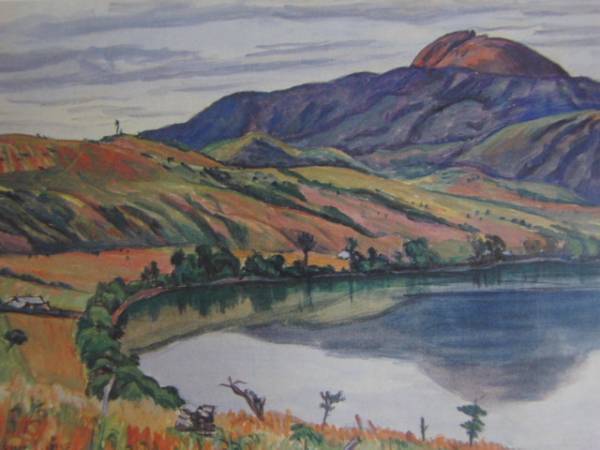 - 石井柏亭、洞爺湖、希少な額装用画集より、新品高級額装付、状態良好、送料無料