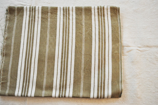 - フランス・アンティーク 綿麻ティッキング/カーキ×ホワイト/ヘリンボーン [6473]
