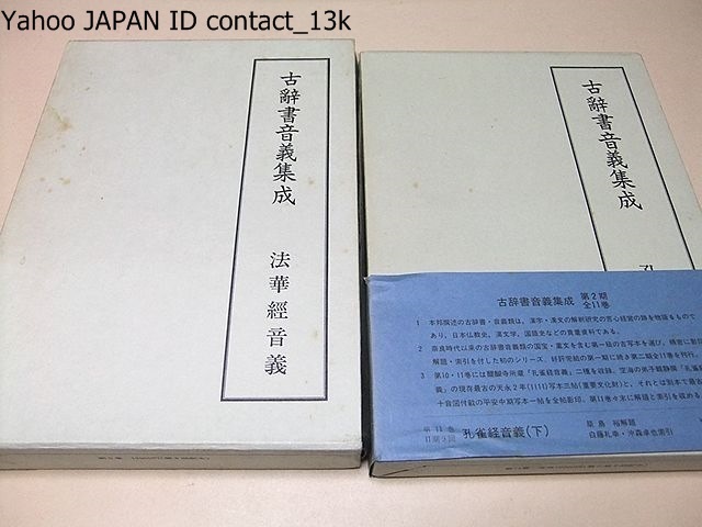 > 古辞書音義集成・法華経音義三種・孔雀経音義下・2冊/奈良時代以来の古辞書音義類より第一級古写本を選び精密に影印・各種索引を付し刊行