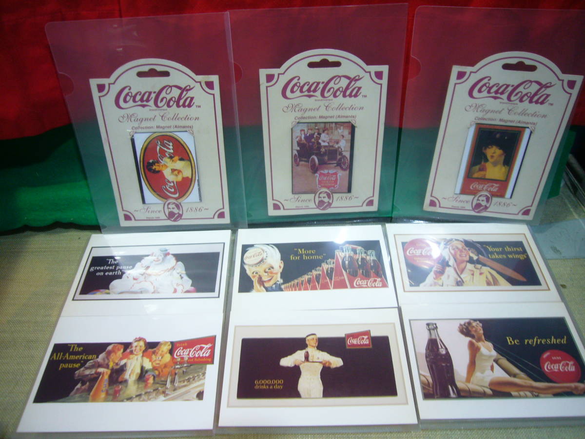 > 【ARS書店】《コカ・コーラ》Coca-Cola・マグネット(スチール製)・カード・18863~復刻版3枚/ポストカード(絵葉書)復刻版・6枚・未使用