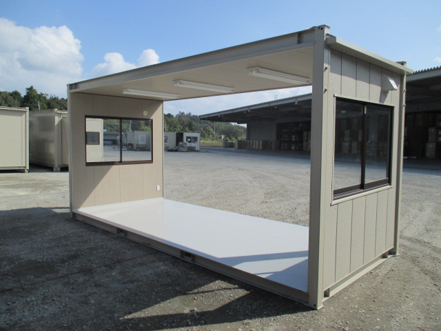 - 【千葉発】スーパーハウス コンテナ 物置 ユニットハウス 4坪 連棟用 中古 仮設 プレハブ 中古車 倉庫 事務所 店舗 8畳 休憩室 増棟