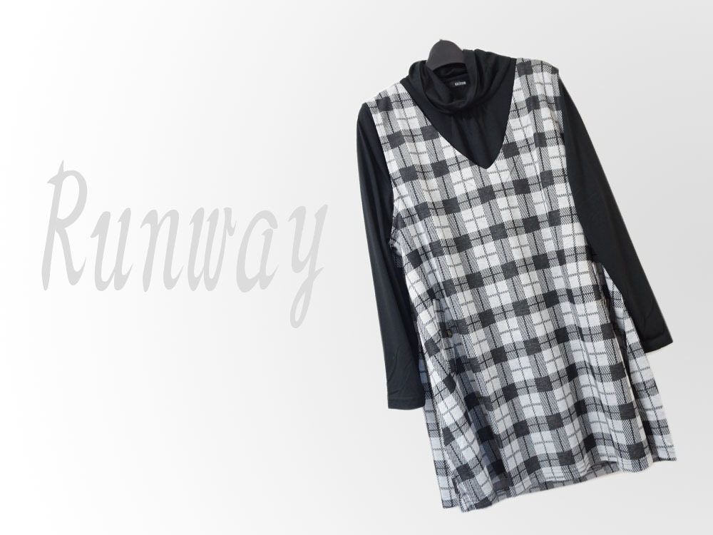 > ●新品/2点セット/チュニック/ハイネックカットソー/3L/重ね着/黒/グレー/チェック/レディース●f5413