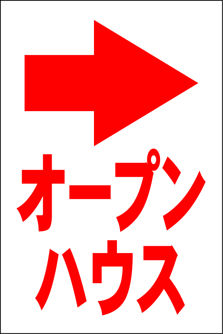 - シンプル看板 Lサイズ 不動産「オープンハウス(右折・赤)」屋外可(約H60cmxW90cm)