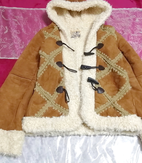 > 茶色フローラルホワイトボアダッフルコート/外套/アウター Brown floral white duffel coat mantle