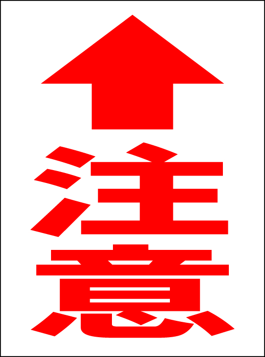 - シンプル看板 「注意(矢印上)」Mサイズ 工場・現場 屋外可(約H45cmxW60cm)