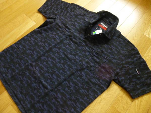 - ラスト1着★HUMMER 半袖ポロシャツ★迷彩 ネイビー/半袖シャツ/5L/鹿の子生地