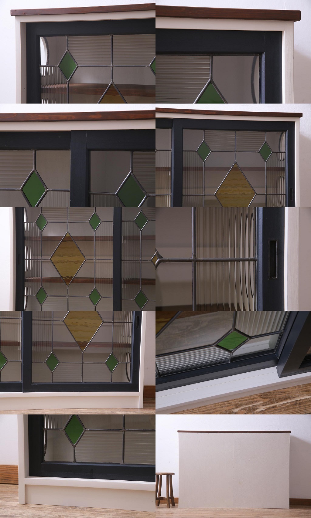 - R-033752 当店オリジナル 古建具リメイク 様々なガラスを組み入れた当店製作のステンドグラス入り戸棚(収納棚、サイドボード)