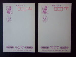 - 未使用・年賀葉書 4枚組【能(羽衣) 7円+1円 二枚 】1967年用 + 【羽根(はね) 7円+1円 二枚】1969年用