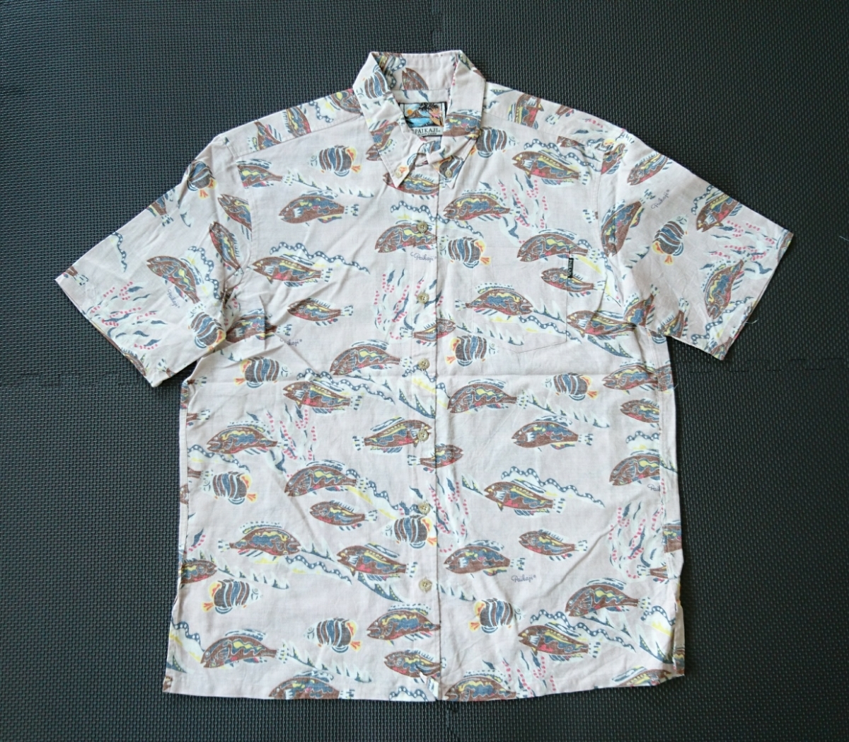 - 1新品 PAIKAJI パイカジ ジュネ 沖縄発 かりゆしウエア ピンク 半袖アロハシャツ 魚柄 竹×綿 LARGE