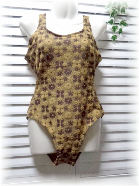- 武蔵産業 ワンピース水着 11号/L キャメル×ダークブラウン