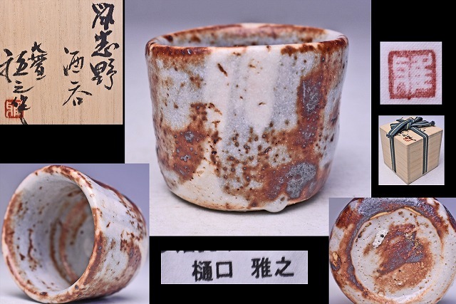 > 樋口雅之 ★ 鼠志野ぐい呑 ★ 共箱共布栞 ★ 個展出品作 ★景色良好 ★ 樋口力三樋口統三家系 ★ 美濃・大萱