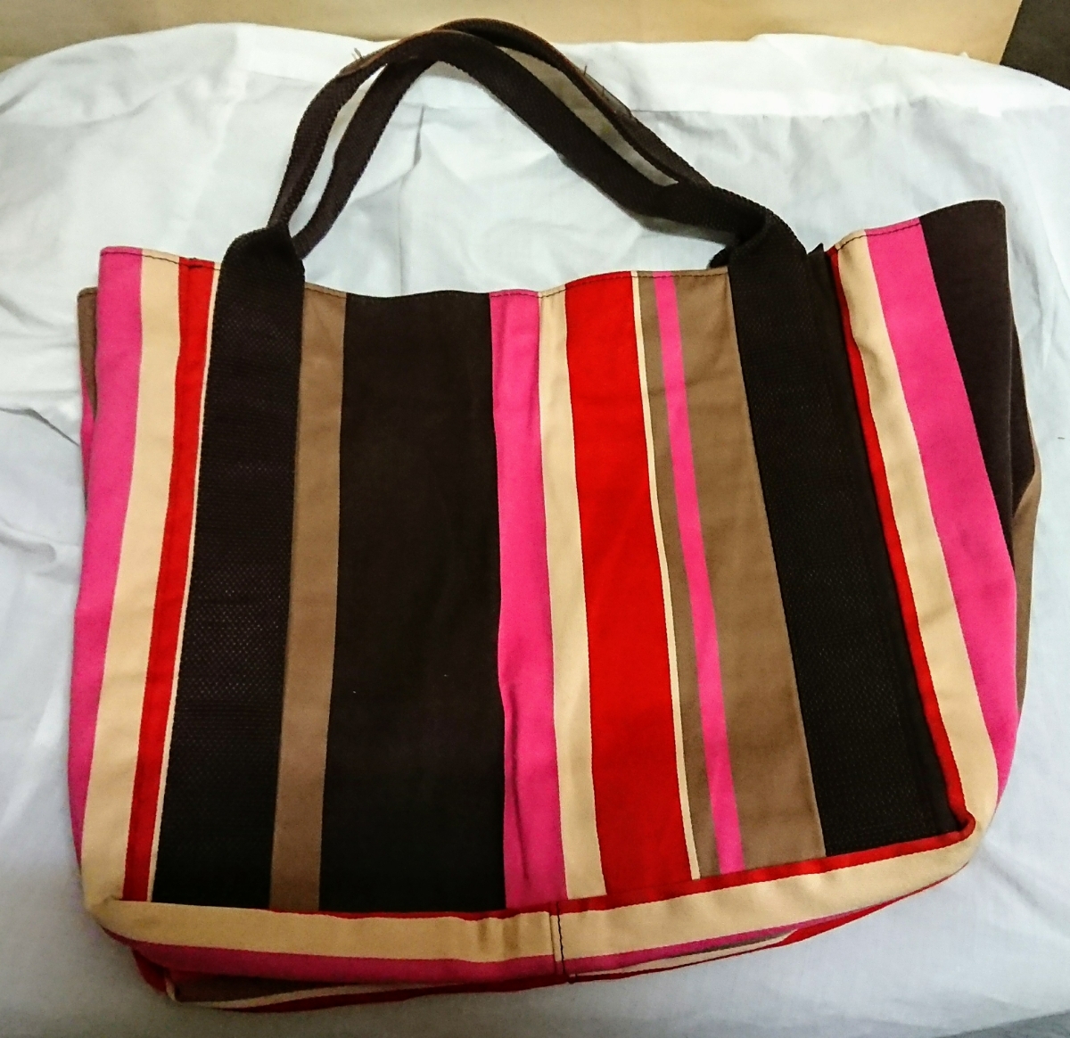 - J28◆美品◆ストライプ トートバッグ 布地◆