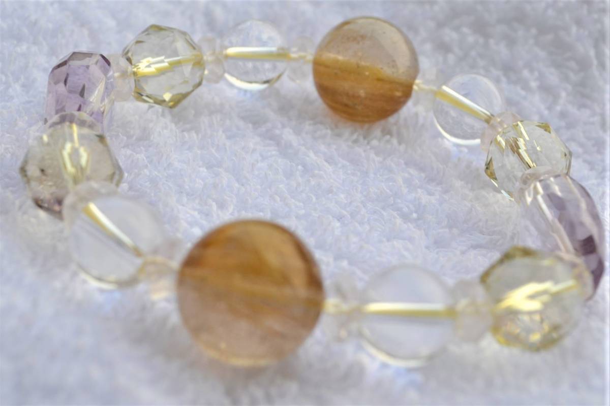 - ルチル アメジス レモンクォーツ 水晶 ローズクオーツ オリジナルブレスレット高品質 高級品!!