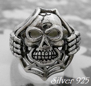 - シルバー925銀のサイド スカルハンド ドクロ フェイス リング/16号.18号より