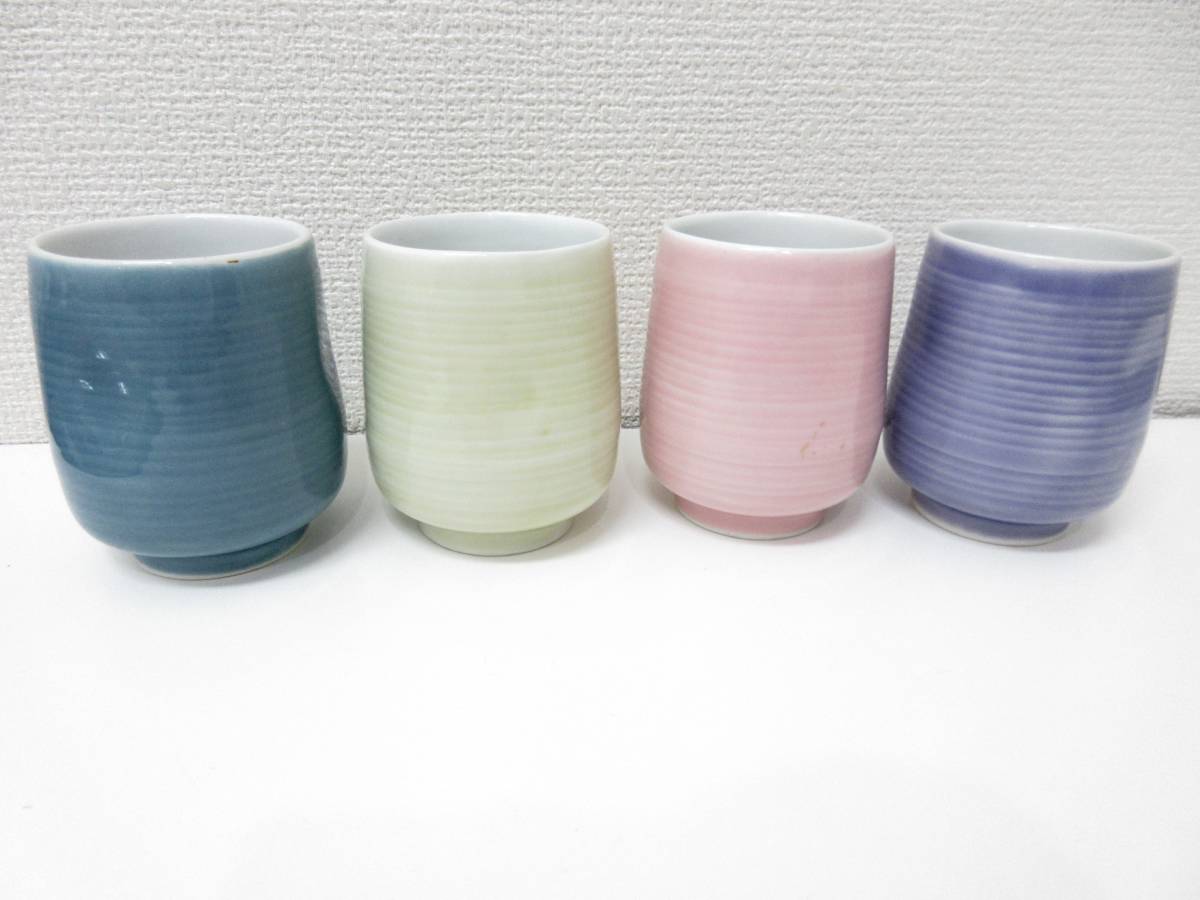 - 極美品■湯呑 湯のみ 湯飲 茶器 色違い 4客セット 管理1906 L-4