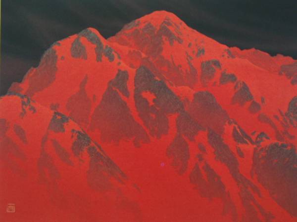 - 新山 拓、剣岳~炎淵~ 、希少画集画、新品額装付、状態良好、kan