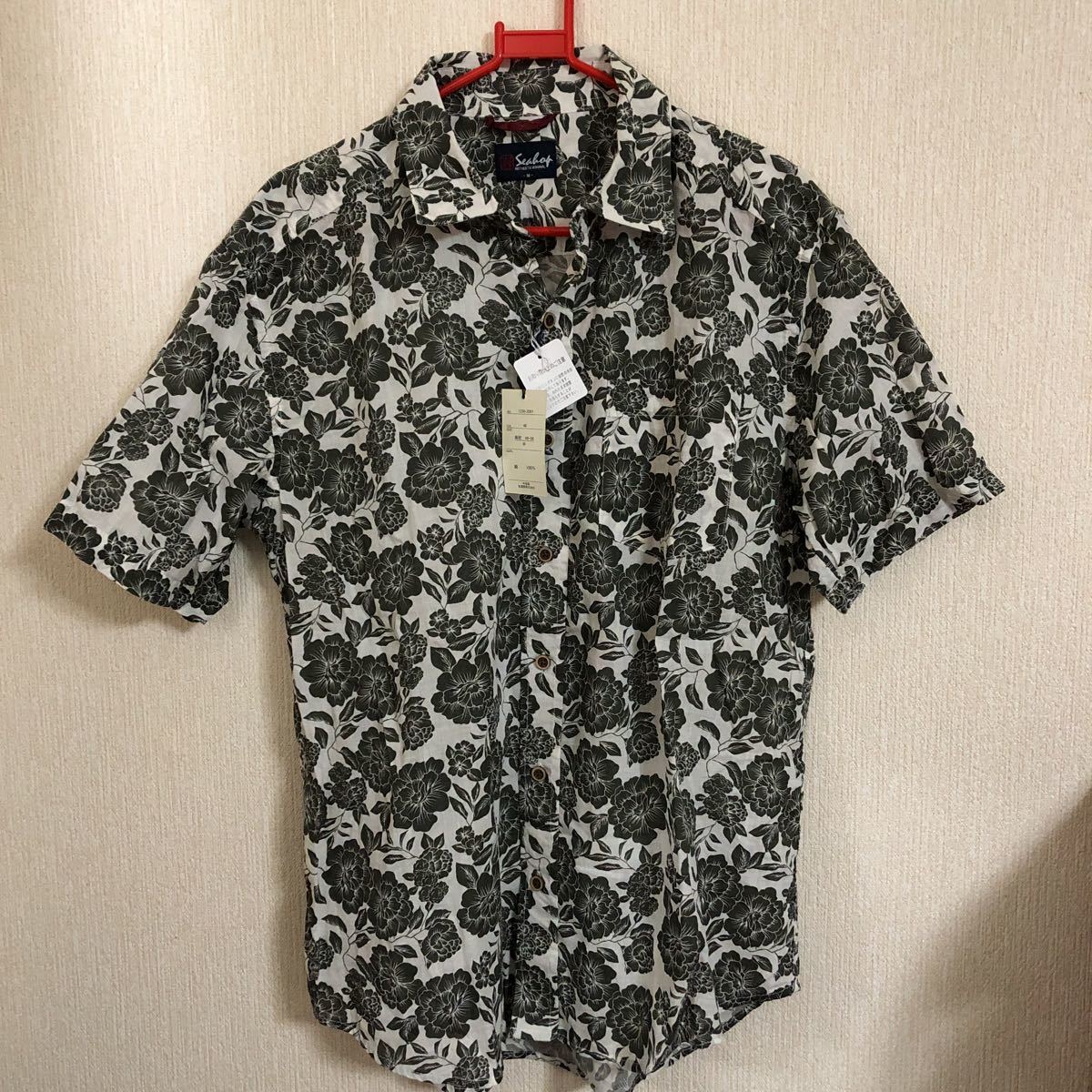 - ハイビスカス柄シャツ☆アロハシャツとして Mサイズ
