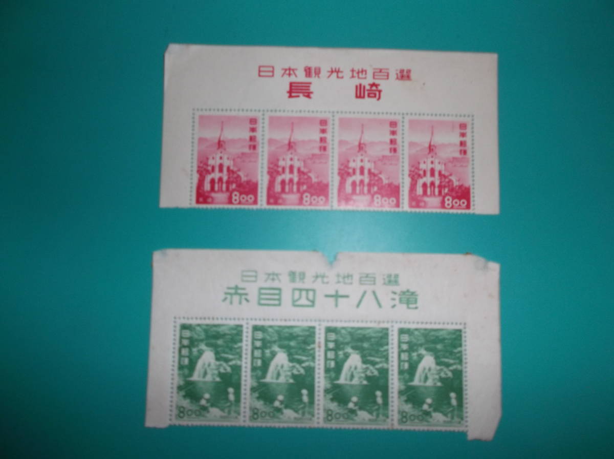 - 題名入り記念切手 日本観光地百選 4B 2種組 長崎8.00 1951.9.15 赤目四十八滝8.00 1951.6.1