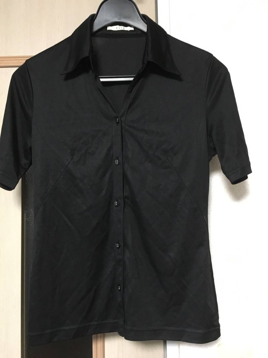 - ★エル ELLE ブラウス シャツ 半袖 トップス 黒 ブラック 無地 38 Mサイズ レディース イトキン
